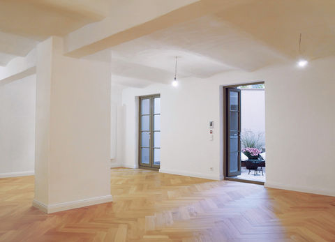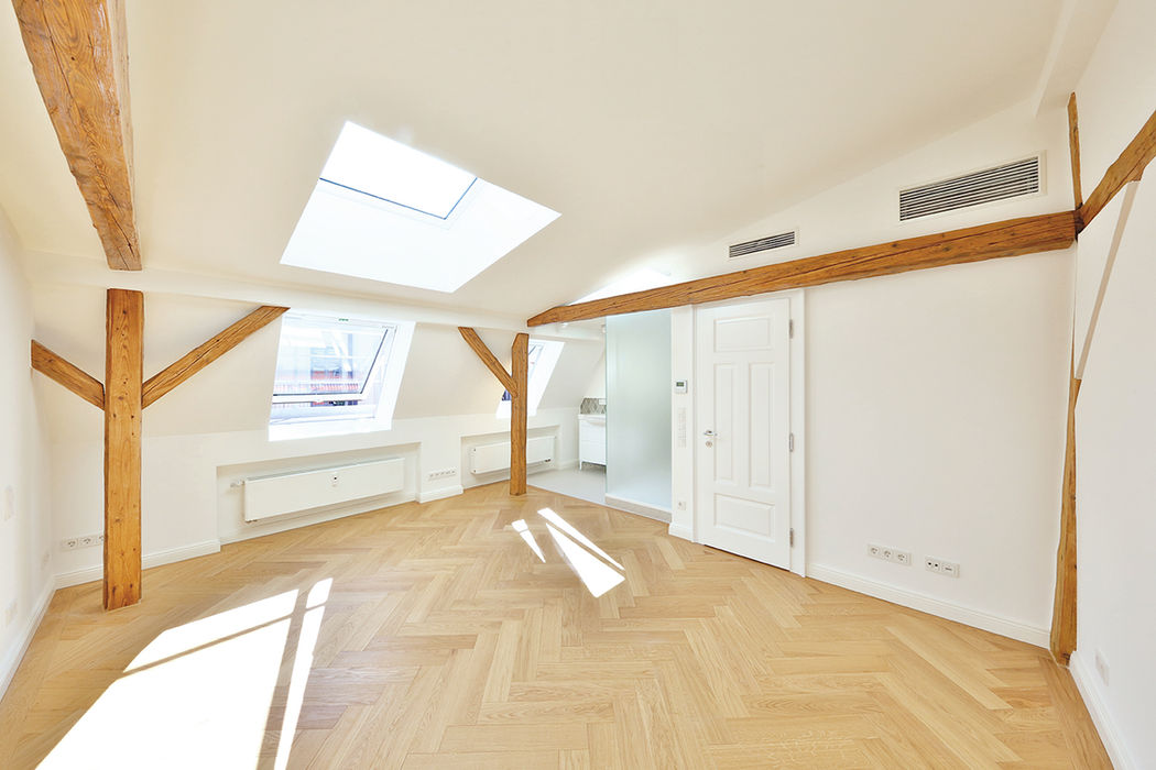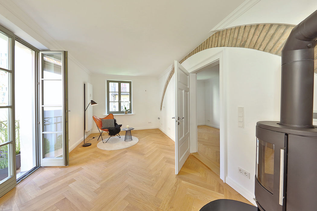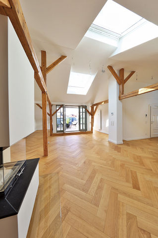 55 bis 65 qm große, gut geschnittene Wohnungen mit 3 Zimmern, auf der Hofseite mit großen Balkonen, mit perfekt verlegtem Fischgrätparkett und meisterhaften Kassettentüren. In einigen Wohnungen konnten wir das Mauerwerk und die Balkenkonstruktion von 1880 sichtbar machen, Holzkaminöfen einbauen und sogar eine große Dachterrasse realisieren.