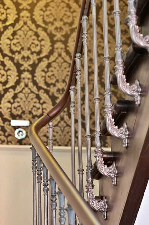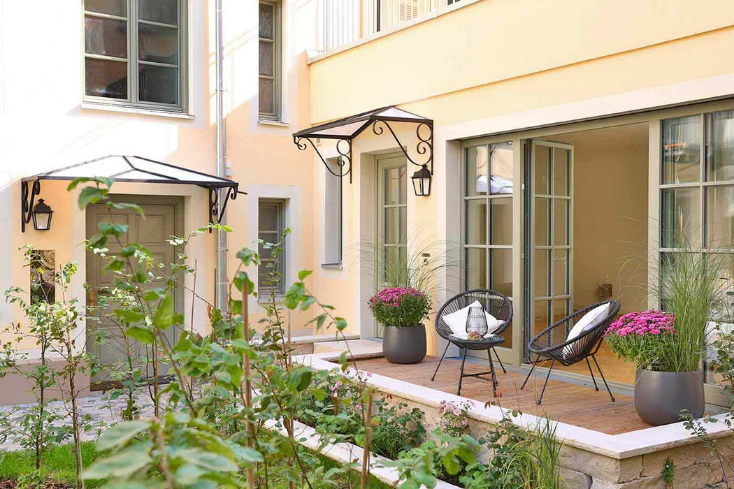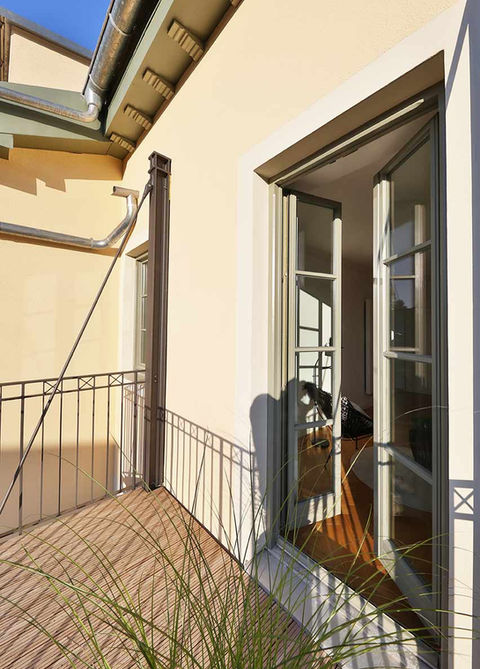 Im Stadtpalais neue Hofbalkone mit stilvollen Geländern und Lärchenholzbelag